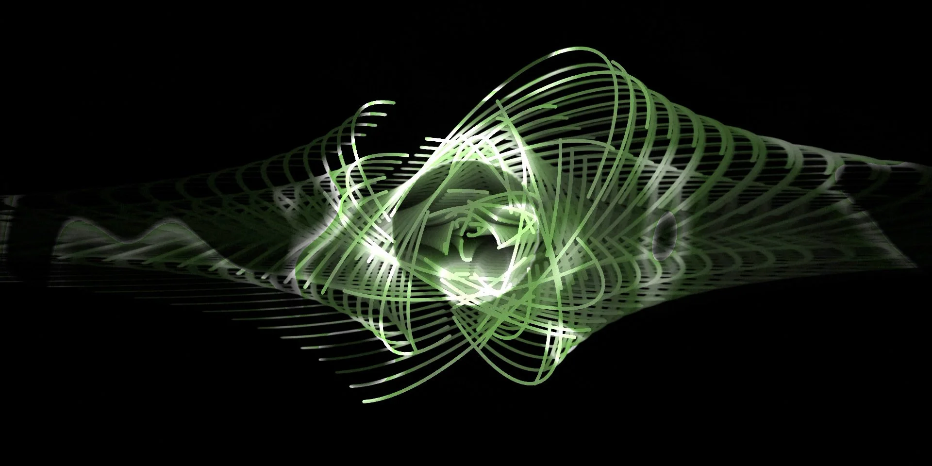 In this electroacoustic piece, resonators are randomly generated across 32 channels of spatial audio and simultaneously mapped to visual raindrops of the same randomized coordinates. As the resonating notes increase decay, they become more melodic, allowing for variations in pitch and noise harmonics. These musical qualities are in dialog with various parameters of a concentric circle to alters it's shape piece by piece pending note decay, noise filtering and melodic movements. This improvisation is joined by the flutist Anita Chandavarkar on bansuri, who dialogs directly with the electronic resonators. Essentially, the flute, electronics and visual elements are all informing each other in real-time. Visuals by Ben Guerrette.